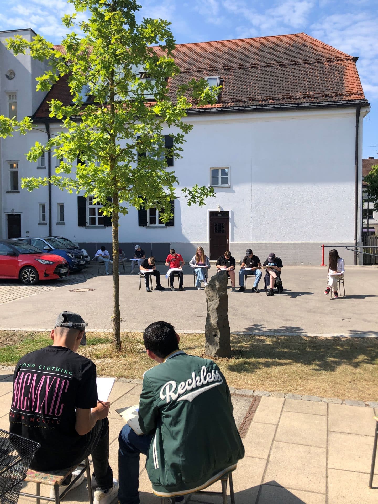 Bei den Vorbereitungen spielte auch die Begegnung mit dem Kunstwerk von Beuys – einer Eiche und einem Basalt, die 2021 vor den Werkstatträumen der Einrichtung gepflanzt wurden – eine wichtige Rolle. Sie regten zur Beschäftigung mit Bäumen und der Auseinandersetzung mit der Klimakrise an.